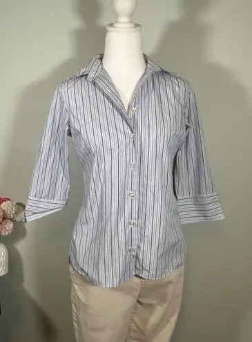 Versatile striped blouse in a sophisticated palette. This tailored shirt features a classic button-d... Show more