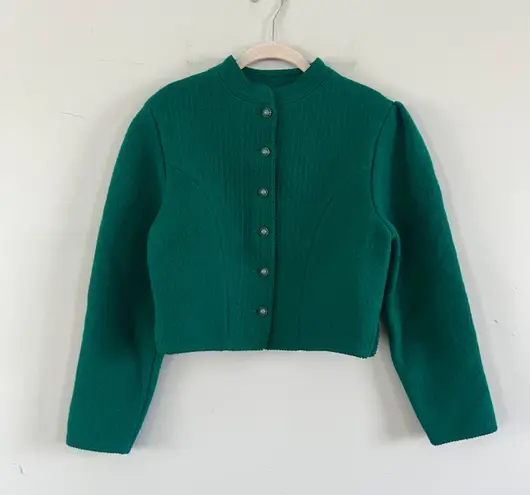 This darling vintage Lands’ End Button Up Sweater Jacket features a teal green color way and boiled... Show more