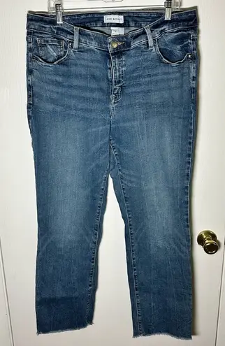 Lane Bryant straight cut size 18 blue jeans w/ slight whiskering at top of the leg and a frayed hem... Show more