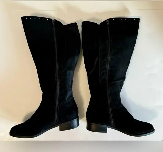 Soft suede feel upper and silky material on calf Studded detail all around. Full zip closure Size: 7... Show more