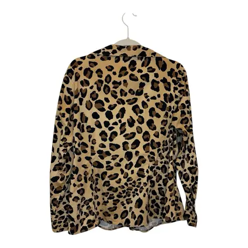 Turn heads with this bold Lane Bryant leopard print blouse. Made from a comfortable cotton-spandex b... Show more