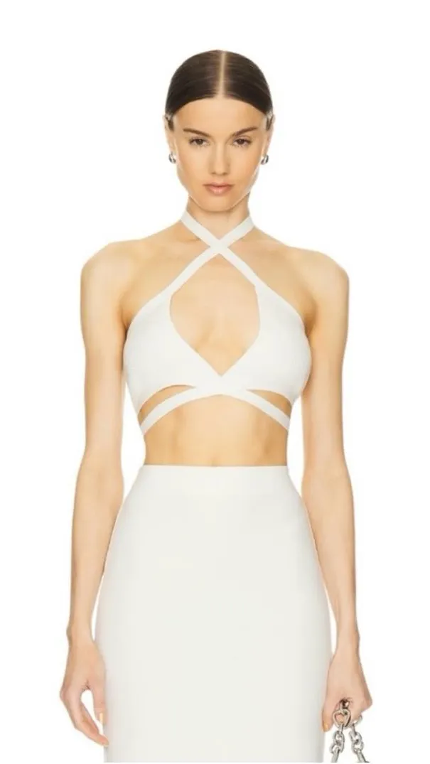 ✨LAPOINTE White Criss Cross Halter Top Size: Large Material: 80% cotton 20% wool Made in China Ma... Show more