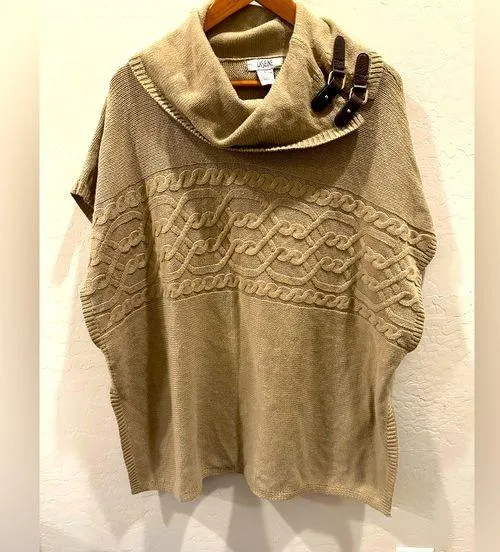 **LaSeine Poncho Sweater Ruana Wool Blend – Size Small** Elevate your style with the LaSeine Poncho Sweater Ruana, a luxurious wool blend perfect for chilly days. With its oversized fit and cozy feel, this versatile piece can be worn as a poncho or ruana for effortless elegance. - **Soft Wool Blend** for warmth and comfort - **Generous Fit**: Length of 28" and Chest measurement of 26" - **Sophisticated Style** with draped, open sides - **Size**: Small (with room for layering) Add a layer of chic sophistication to your wardrobe with this stunning poncho sweater. Ideal for cozying up on cooler days, this ruana sweater combines comfort with a touch of elegance.