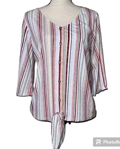 LATE AUGUST women's medium 3/4 sleeve blouse v-neck button accent tie bottom Red - $26 - From Melissa