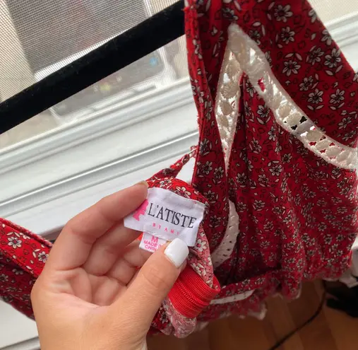 WORN ONCE spaghetti strap romper Size: Medium Brand:l’atiste Material: rayon Color: red and white... Show more