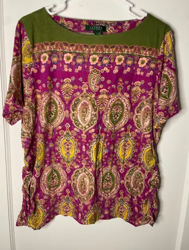 Pit to pit 26" Length 24" Color: Purple Type: Blouse Department: Women Style: Tunic Material: 100%... Show more