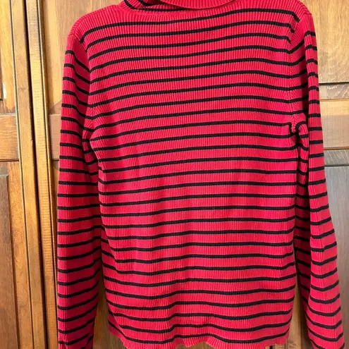 Lauren Ralph Lauren Red Black Striped Turtleneck Sweater 100% cot… Size XL - $27 - From Kathryn