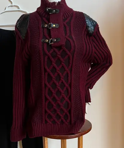 LCR Maroon & black Sweater buckle Details and shoulder patches wool blend Red Size L - $61 - From Monica