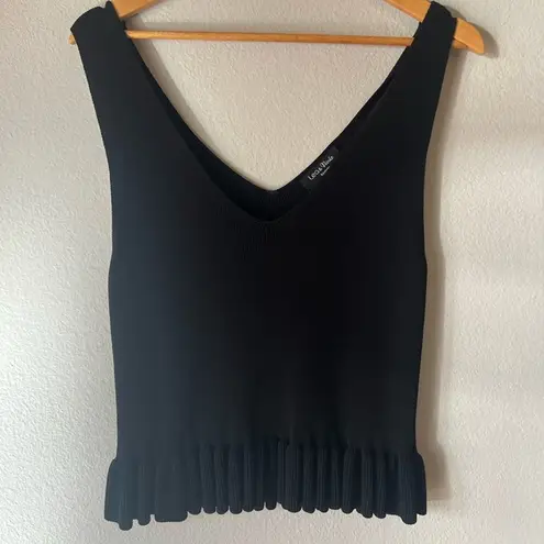 bust 16" length 21'' no found flaws 65%viscose/35%nylon Black top that goes with anything, cute flair at bottom to make you wanna shake it up. 🌱Comment for Questions 🌙Offers welcome!