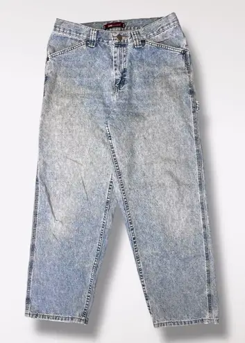 Vintage Lee Riveted carpenter jeans in a light wash with relaxed straight leg and sturdy utility poc... Show more