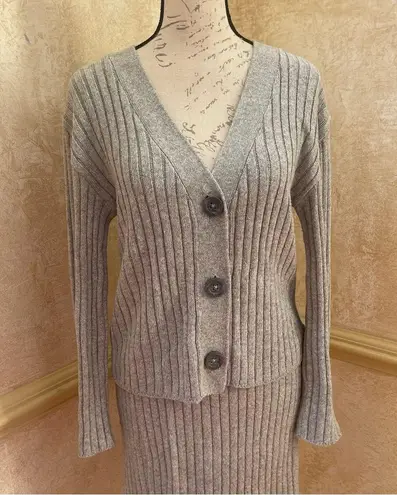 Leith Grey Knitted Ribbed Skirt and sweater cardigan set v-neck front buttons Sz M New without tags.... Show more