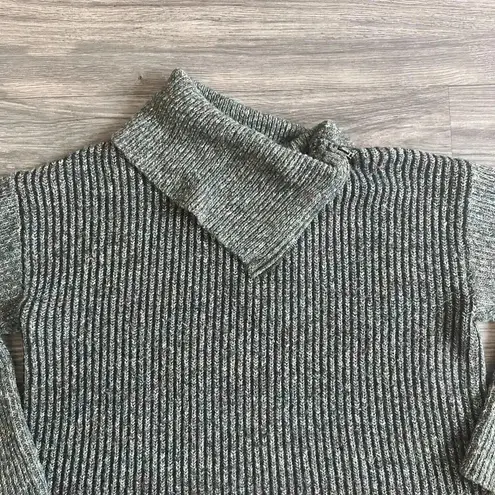 The Leo & Nicole Green Tweed Ribbed Zip Cowl Neck Zip Sides Sweater. Size large. Features - cowl nec... Show more
