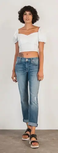 Level 99 Sienna Tomboy Fit Distressed Jeans in Beday Wash Style# EY2954 Excellent condition: No flaws! Size 26 Measurements; (taken lying flat, straight across) Waist: 15" Rise: 9.5" Inseam: 28.5" (un-cuffed) Thanks for checking out my closet! JB1