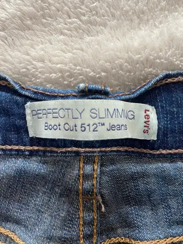 Levi’s 512 Bootcut Jeans Size 14 Long perfectly slimming dark blue wash waist 32” rise 11” inseam... Show more