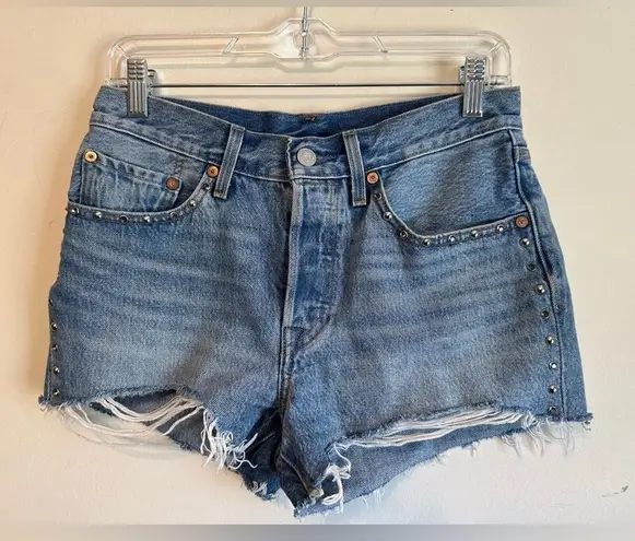 Levi’s 501 Embellished Distressed Cutoff Denim Shorts Size 26 Pre owned but in good condition. No s... Show more