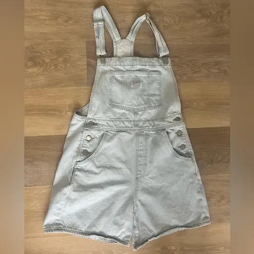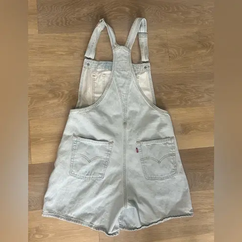 Soft, faded light wash denim short overalls from Levi Strauss & Co. Adjustable straps, button sides,... Show more