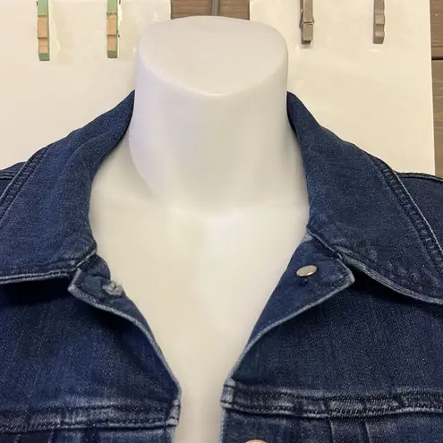 Gently worn, great condition Levi’s Blue Ombré 3/4 Sleeves Cropped Jean Jacket- Large IMO runs s... Show more