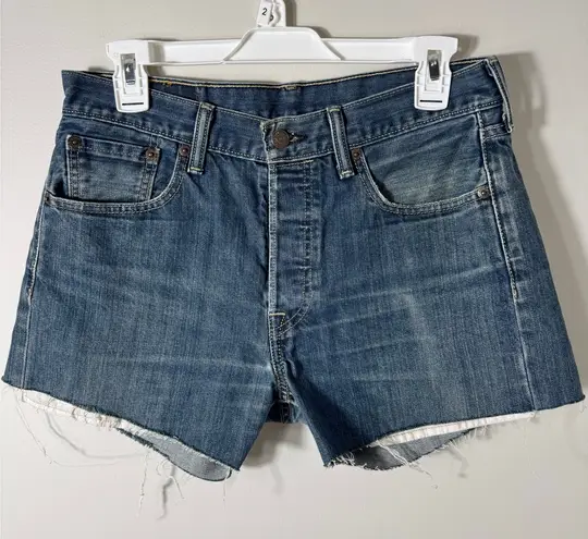In great condition. 501 cut off raw hem shorts. Waist size 30. Measurements below. waist flat: 16"... Show more