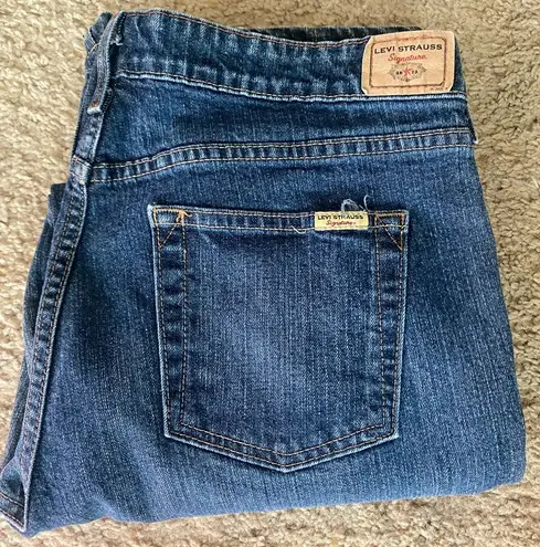 Stylish bootcut jeans by Levi's. Features classic stitching and button detail. Dark blue wash Waist... Show more