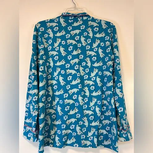 Life is Good 2-piece pajama set (pants & top). Color is a bluish green. Pattern of sleeping dogs and... Show more