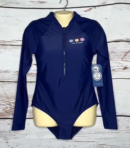 Life is Good Size M Navy Blue - Daisy One Piece Rash Guard Swimsuit. Lightly Padded, Removable Cups.... Show more
