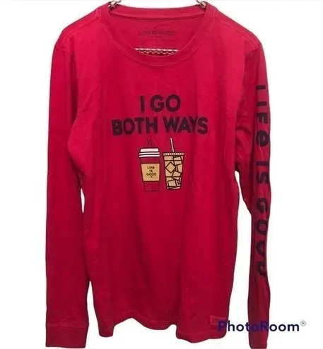 LIFE IS GOOD PINK GRAPHIC LONG SLEEVE TSHIRT I GO BOTH WAYS ICE HOT COFFEE TOP Size S Approx armpi... Show more