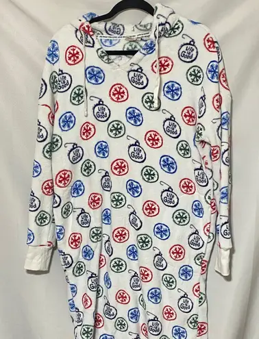 Life Is Good WOMENS SIZE SMALL Hooded SOFT FLEECE Nightgown Snowflake and Ornament Pattern Soft and... Show more