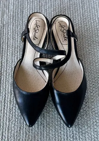 Life Stride Minimalist Black Strappy Low Block Heel Pointed Toe Dress Shoe Sz 6 - $25 - From Katie