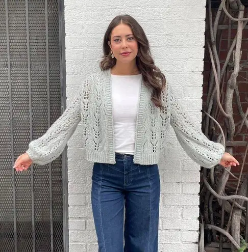 Light blue Abercrombie & Fitch cropped open front crochet cardigan sz M
