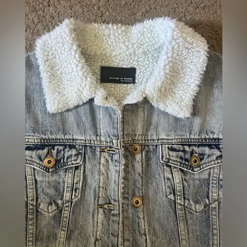 Light blue jean jacket with white teddy fur lining size medium - $20 - From reilly