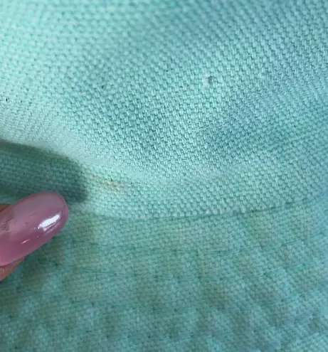 light teal and chevron print on inside bucket hat Gently used bucket hat, one side has a light seafoam green/teal color and the inside has a chevron pattern in white and teal, smoke free home One tiny stain, see pictures, Barely noticeable