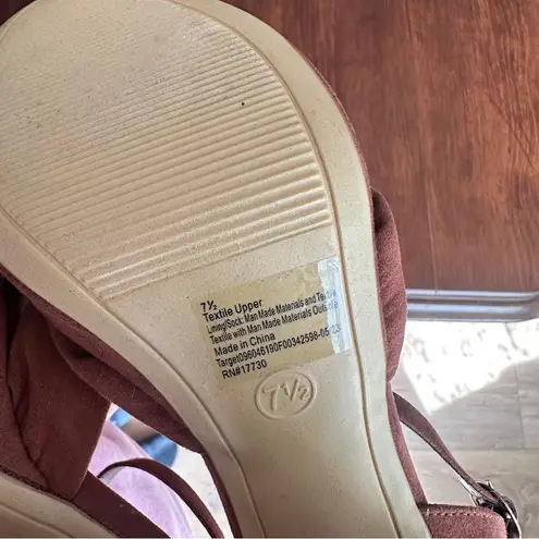 Chic faux suede platform sandals with a stylish bow. Adjustable ankle strap for a secure fit. Perfec... Show more