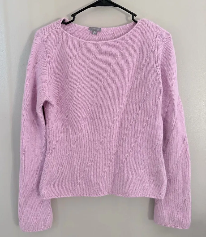 Like New Ann Taylor cashmere fitted sweater size medium, light purple.