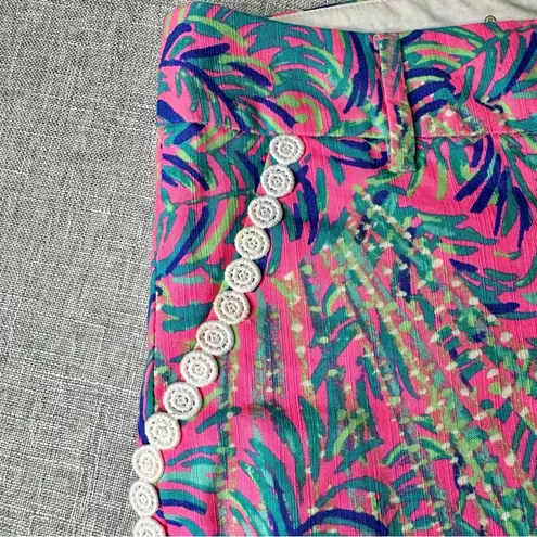 Lilly Pulitzer Pink Sunset Coco Breeze Callahan 5" Short. Fun tropical print with lace trim! Size 4... Show more
