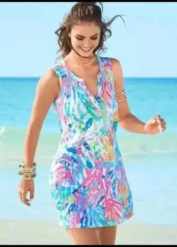This Lilly Pulitzer Essie Beach dress in Sparkling Sands design is a colorful and retro 90’s neon st... Show more