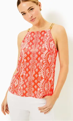 Lilly Pulitzer Joannah Silk Top Chain Strap Flamingo Feather Harbour View 12 Measurements: • Bust/C... Show more