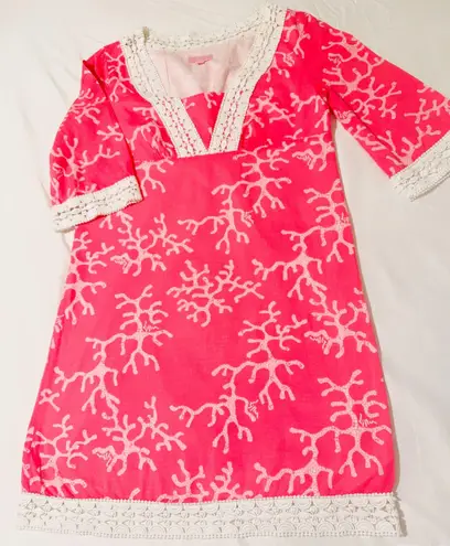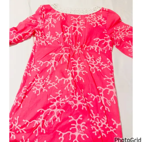 Very comfy Coral design dress with Lily logos. It has a side zipper, 3/4 sleeves, crochet details, a... Show more