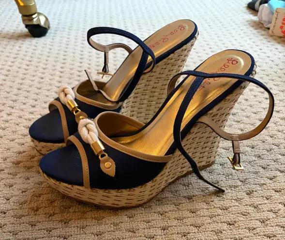 Cute twist knot blue lily pulitzer high wedges. Barely worn! Great a little west on the logo of he l... Show more