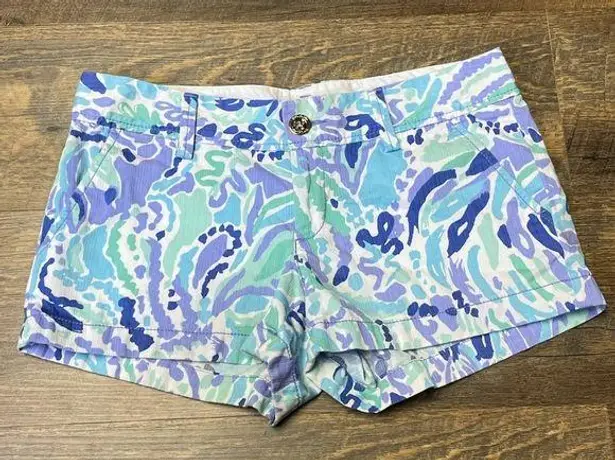 Lilly Pulitzer The Walsh Shorts Lilac Periwinkle Women’s Size 2 Purple Teal Blue 100% Cotton Go... Show more