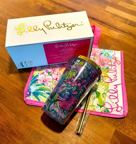 Brand New in Box GIFT READY Lilly Pulitzer Tumbler in ‘Mermaid in the Shade Print. With Gold Straw.... Show more