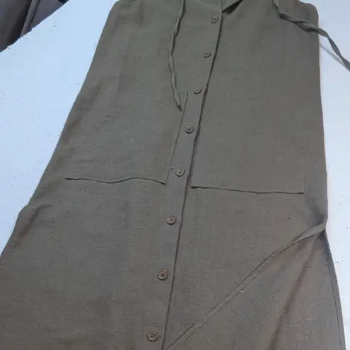 Measurements: • Length: 52 in • Width: 17 in Style: Maxi, Shirt Dress Dress Length: Long Department: Women Sleeve Length: Sleeveless Pattern: Solid Occasion: Casual Material: Linen Fabric Type: Woven Season: Summer, Spring Closure: Button Accents: Button, Drawstring Features: Pockets, Hooded Garment Care: Dry Clean Only Country of Origin: China Unit Type: Unit See hole in bottom hem Keywords: linen dress, sleeveless dress, hooded dress, button front, long dress, midi dress, casual, resort wear, summer dress, travel dress, neutral, minimalist, button down All items are preloved unless noted NWT. All sales are final. I ship within one business day. Please compare the measurements to something you already own.