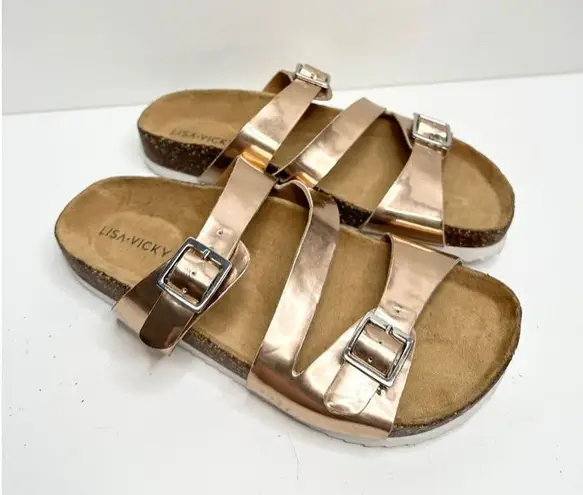 Lisa Vicky‎ Sandals Womens Size 6 Rose Gold Slip On Slides - $40 - From Brenda