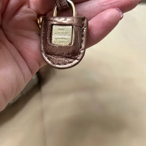 NWOT crescent shape Liz Claiborne brown and white shoulder purse. Crocodile pattern on handle, botto... Show more