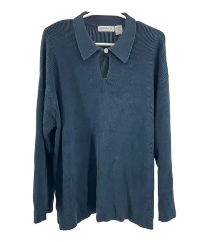 Liz Claiborne Collection L cotton rayon collared keyhole sweater navy casual Blue Size L - $17 - From Vanessa