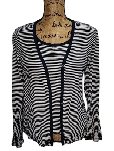Keywords: striped tank top, sleeveless top, casual tank, basic tank top, navy and white, summer top, womens tank, liz claiborne, XL tank top, scoop neck, striped shirt, everyday top, vacation wear, warm weather, layering piece