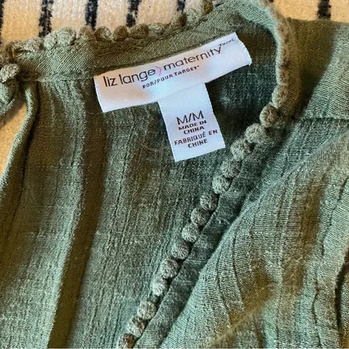 Liz Lange Red Puff Sleeve Blouse with Tie Front, Olive Green Too, Printed Tie Size M - $24 - From Kayla