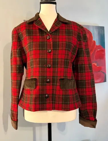 LIZ SPORT Red Brown Equestrian Plaid Lined Wool Blend Riding Jacket Blazer 4 S - $31 - From T