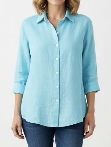 Shirt collar Slightly Fitted: Softly shapes the body Falls at hip 100% linen is crafted from premium-grade European flax. The machine-washable fabric has exceptional ease and longevity that will ensure seasons of wear. Machine washable Good pre owned condition, no rips, holes or stains Approximate measurements laying flat: 21" armpit to armpit 12" sleeves 25" length Colors may slightly vary depending on lighting & screen settings Clean, smoke free, pet free environment Same day or next day shipping Offers welcome and will be considered