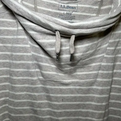 Gray and white striped pull over sweater with drawstrings at the neck Approx. Measurements: Bust/... Show more