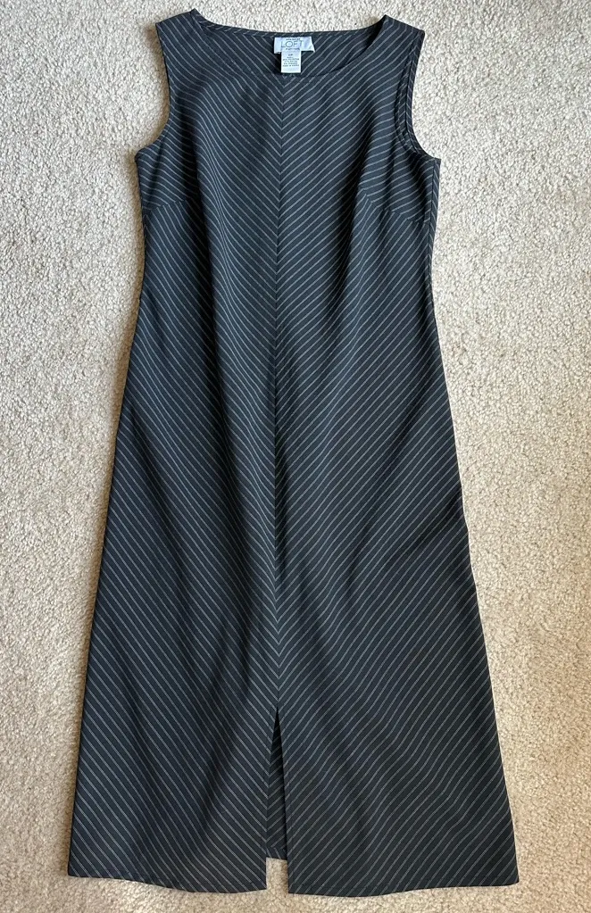 Loft midi dress with subtle pinstripes. Small slit in front and Sleeveless design. Size 0 petite.